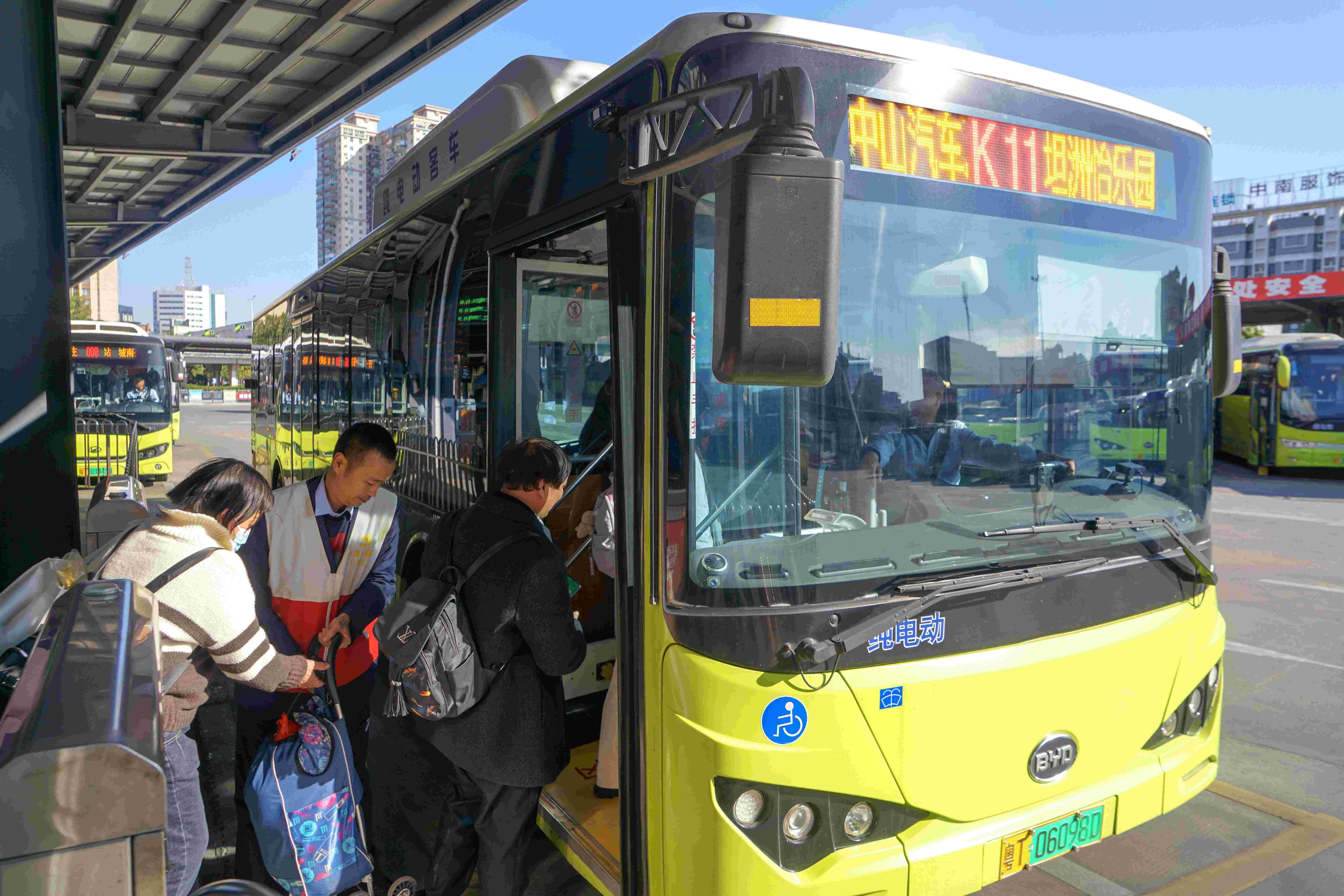 在人流密集的城轨中山站,中山公交集团早在春运开启时便延长002路公交运营服务时间,根据每天23:00后高铁到站情况,动态增开002路公交线路运行班次,将末班车调整至高铁尾班离站20分钟后,实现公交服务与高铁服务全时段接驳。