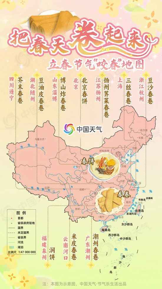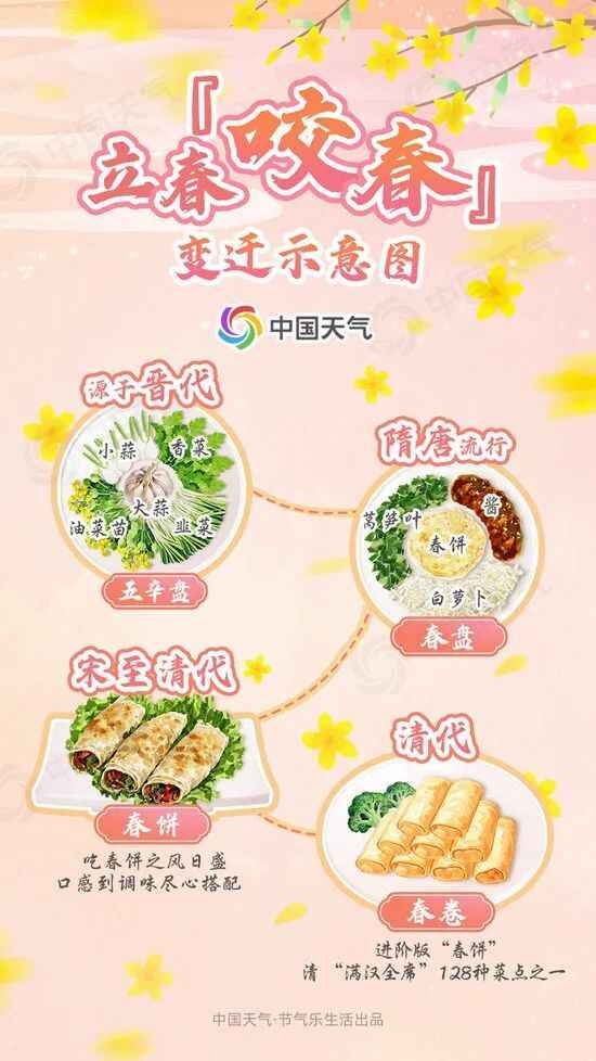 感受春天从舌尖开始。今天立春,您“咬春”了吗?此时,韭菜鲜美、豆芽生嫩、荠菜新发……不论是吃春卷还是吃春饼,都能一卷了之。中国天气也应时制作了立春“咬春”地图,去看看大江南北的春日好“食”光。