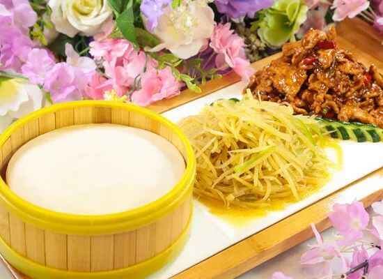 如果你很有想象力,春饼还可以有各种搭配,一盘酱,一份土豆丝、火腿丝、葱丝、卷烤鸭、瘦肉丝、木耳丝……只要你想得到,春饼就可以卷一切。在这场春宴里,每个人都可以拥有自己的专属口味,丰俭由人。