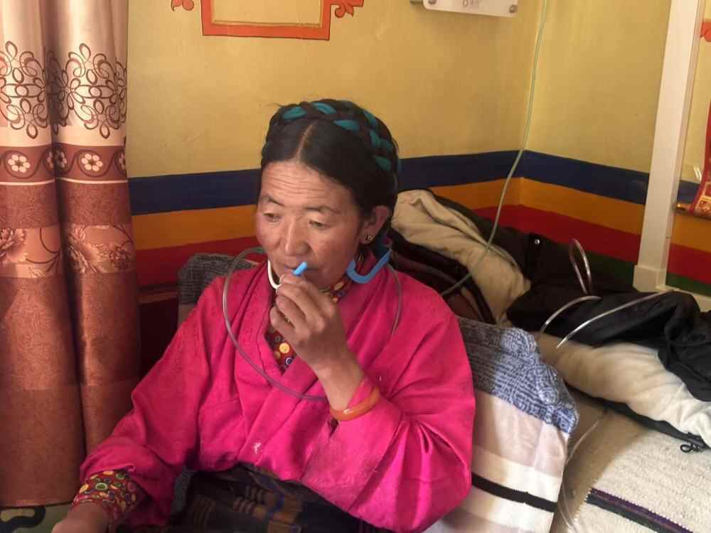 2月1日,推瓦村村民在“生命之屋”吸氧。(受访者供图)