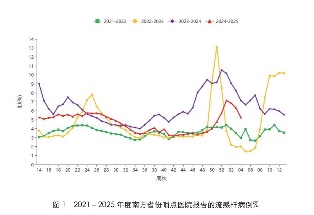 报告显示,2025年第4周(2025年1月20日-2025年1月26日),南方省份哨点医院报告的ILI%(流感样病例占门急诊病例总数百分比)为5.3%,低于前一周水平(6.3%),高于2022~2023年同期水平(3.0%和 2.0%),低于2024年同期水平(7.2%)。2025年第4周,北方省份哨点医院报告的ILI%为4.2%,低于前一周水平(5.1%),高于2022~2023年同期水平(2.6%和 2.0%),低于2024年同期水平(5.2%)。