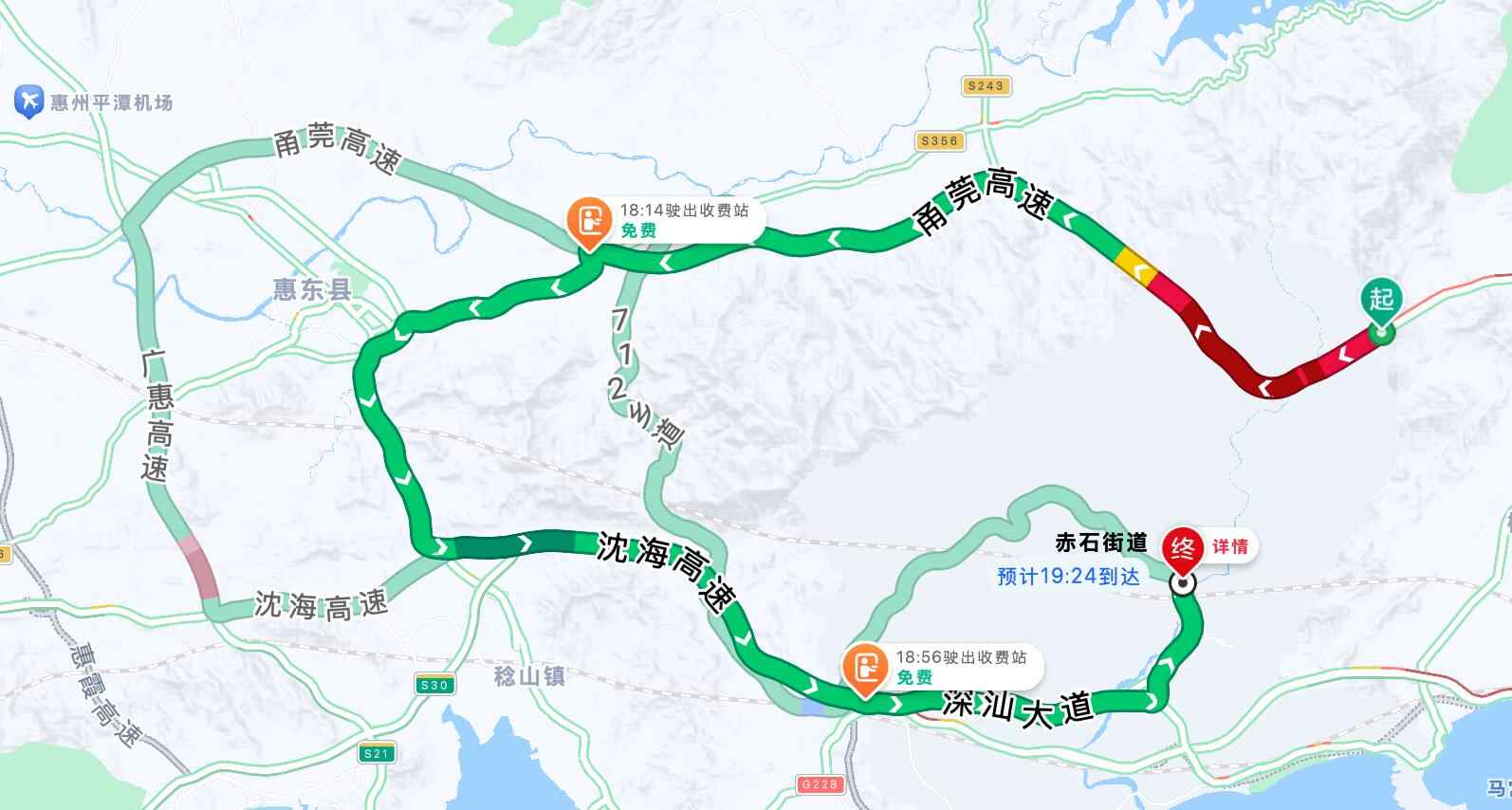 主要路段:沈海高速、汕湛高速、云茂高速、广昆高速、甬莞高速