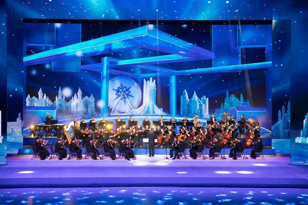 2024年4月13日,哈尔滨交响乐团在第九届亚洲冬季运动会倒计时300天主题活动现场表演。