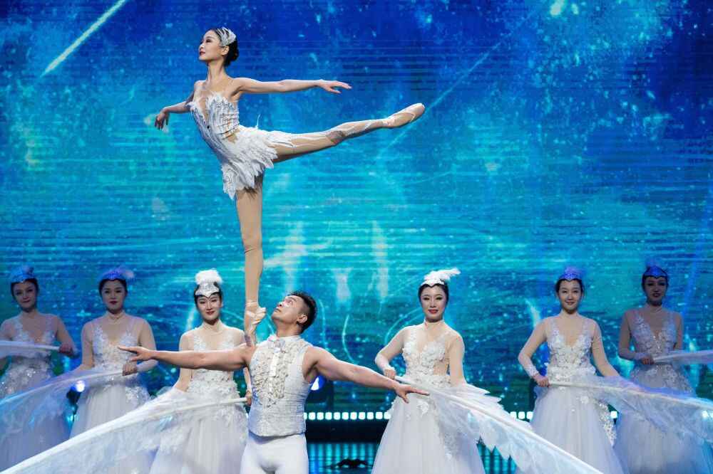 2024年5月17日,演职人员在位于哈尔滨大剧院的第八届中俄博览会文艺演出现场表演。