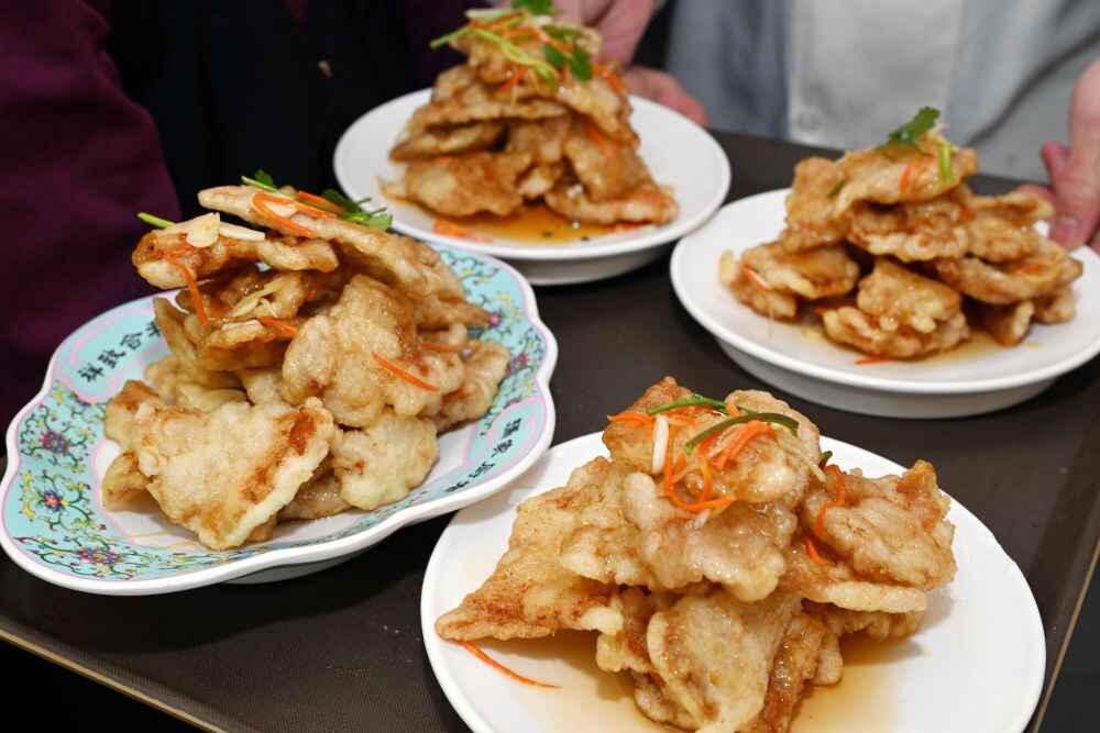 这是2025年1月29日在哈尔滨市道里区老厨家中央大街店拍摄的刚出锅的锅包肉。