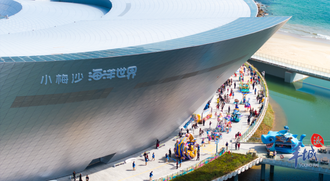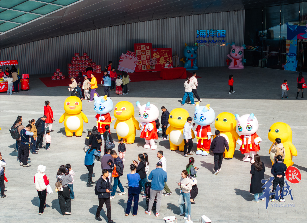 此外,为增强度假村与海洋世界的深度联动,小梅沙今年引入了火爆的“奶龙”IP联动,分别在小梅沙度假村沙滩和小梅沙海洋世界入口处设置巨型奶龙。基于小梅沙的IP敖宝敖仔,也和四海龙王随机出现,一起派发新春红包。