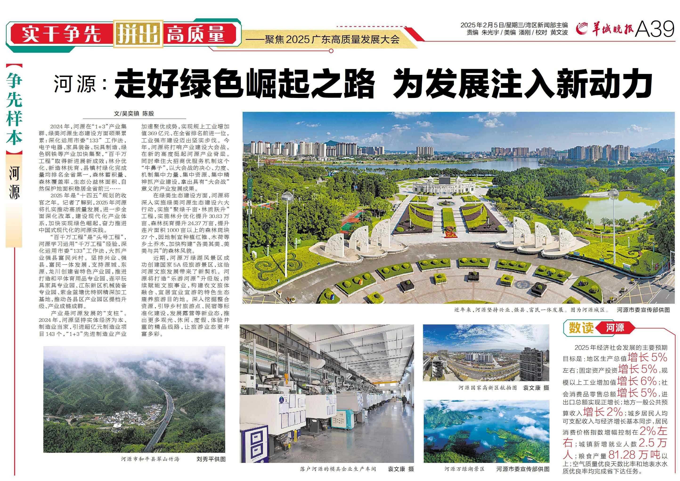 2025年是“十四五”规划的收官之年。记者了解到,2025年河源将扎实推动高质量发展,进一步全面深化改革,建设现代化产业体系,加快实现绿色崛起,奋力推进中国式现代化的河源实践。