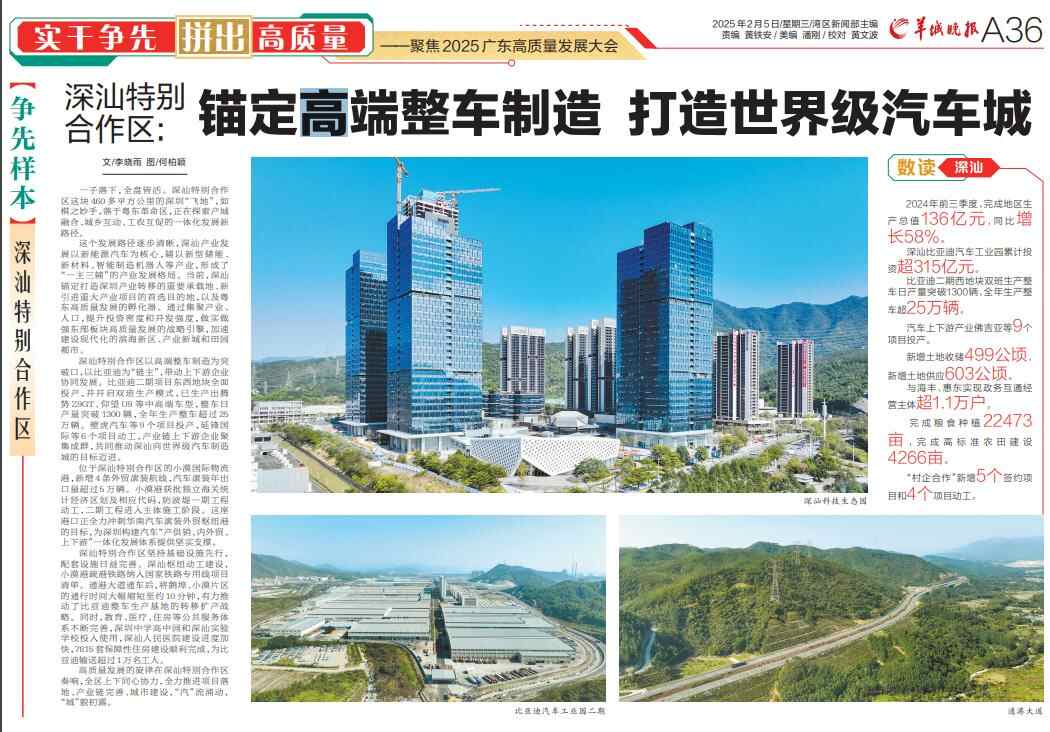 高质量发展的旋律在深汕特别合作区奏响,全区上下同心协力,全力推进项目落地、产业链完善、城市建设,“汽”流涌动,“城”貌初露。
