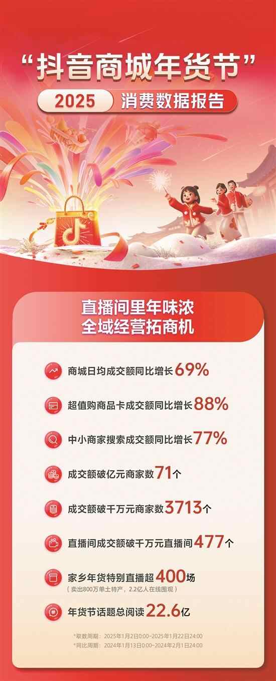 字节跳动:抖音电商发布2025年货节数据 3713个商家成交额破千万元