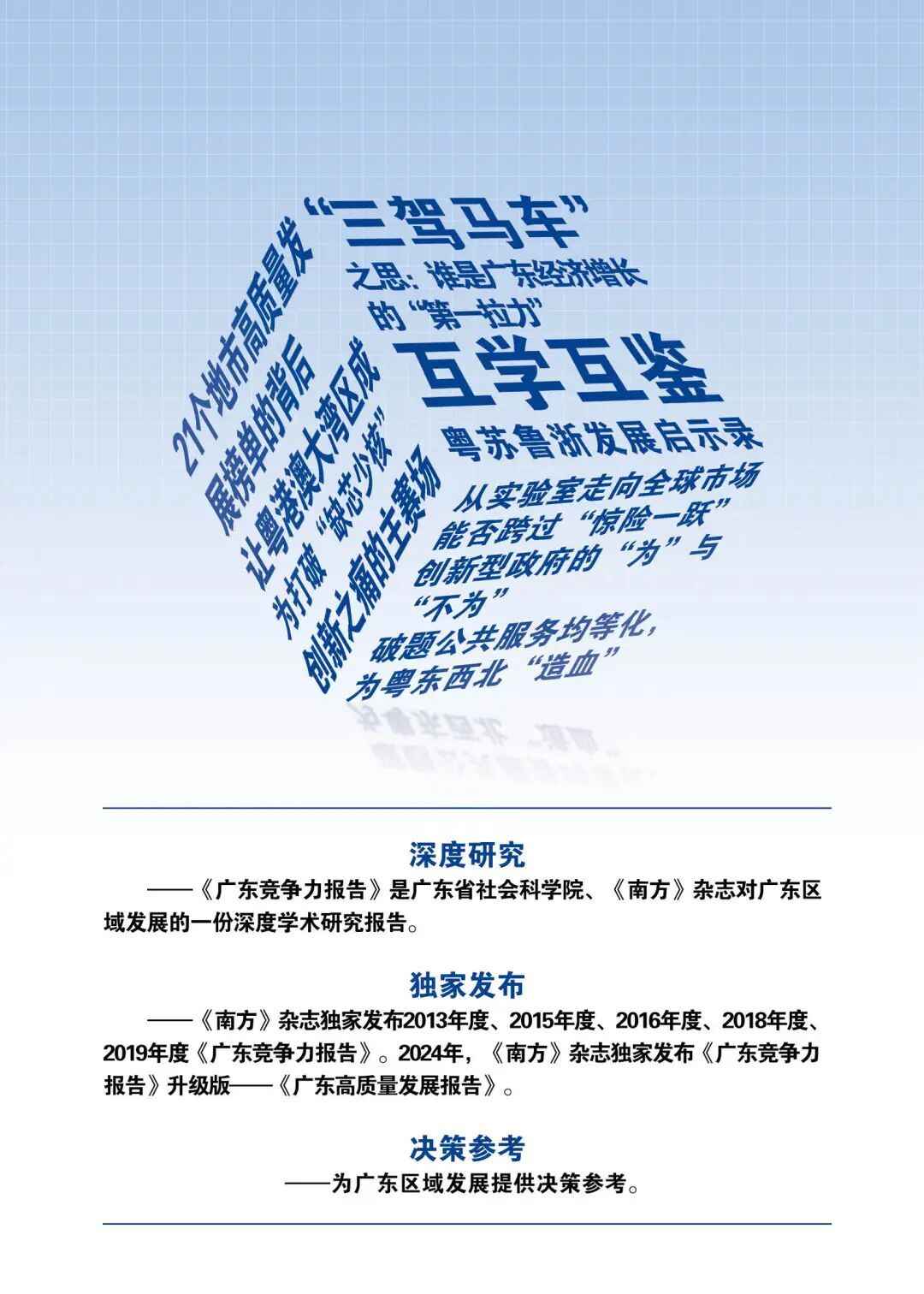 《广东竞争力报告》是广东省社会科学院、《南方》杂志连续多年推出的关于广东经济发展的深度研究报告。日前,《南方》杂志与广东省社会科学院携手,推出《广东竞争力报告》特刊升级版——《赢在后劲——独家发布〈2024年度广东高质量发展报告〉》深度解读特刊。