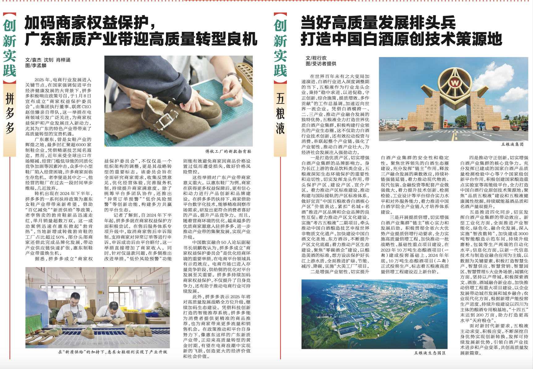 四是推动守正创新,切实增强白酒产业集群的核心竞争力。充分发挥已建成的国家白酒产品质量检测检验中心等7个国家级创新平台作用,积极创建国家酿造重点实验室等高能级平台,全力打造中国白酒行业原创技术策源地;聚焦“品质五粮液”建设和五粮液健康属性挖掘,持续赋能基酒品质和名酒产量双提升。
