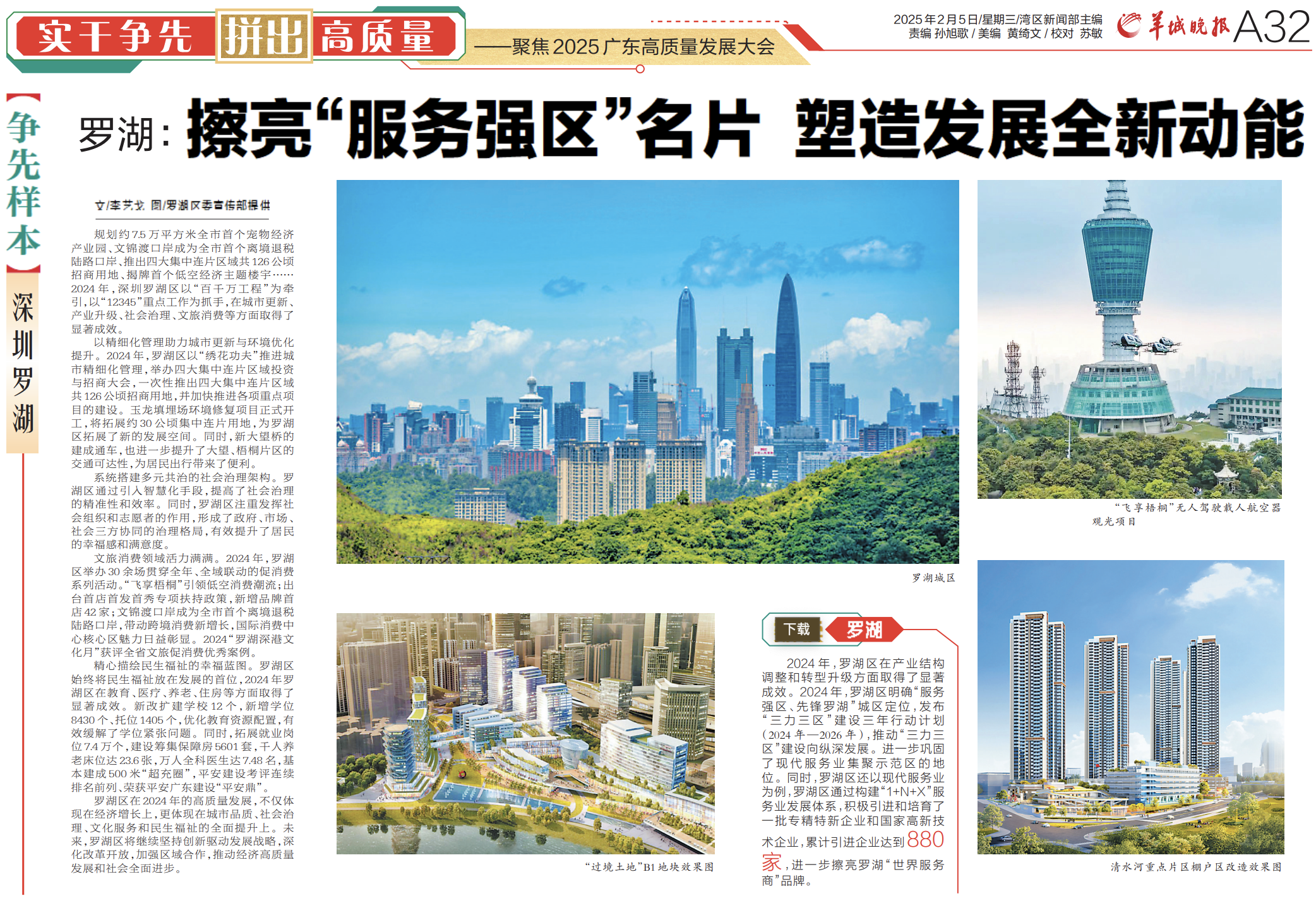 规划约7.5万平方米全市首个宠物经济产业园、文锦渡口岸成为全市首个离境退税陆路口岸、推出四大集中连片区域共126公顷招商用地、揭牌首个低空经济主题楼宇……2024年,深圳罗湖区以“百千万工程”为牵引,以“12345”重点工作为抓手,在城市更新、产业升级、社会治理、文旅消费等方面取得了显著成效。