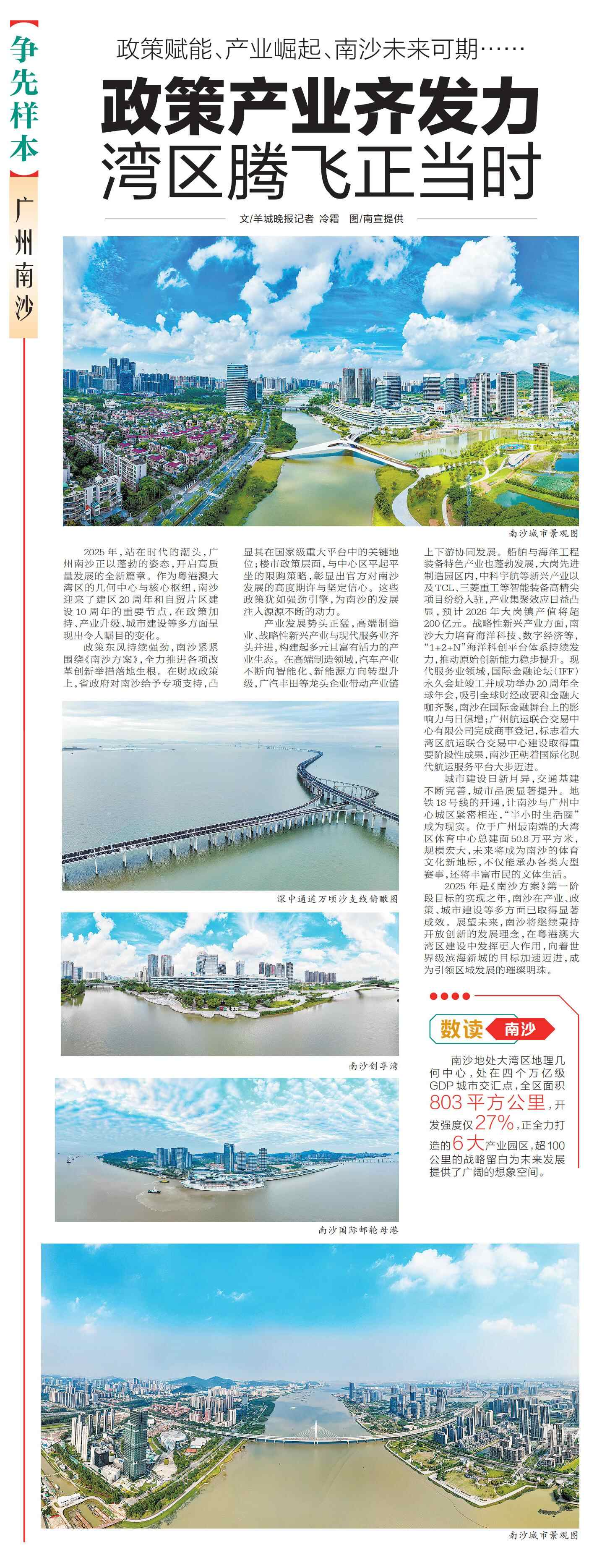 2025年,站在时代的潮头,广州南沙正以蓬勃的姿态,开启高质量发展的全新篇章。作为粤港澳大湾区的几何中心与核心枢纽,南沙迎来了建区20周年和自贸片区建设10周年的重要节点,在政策加持、产业升级、城市建设等多方面呈现出令人瞩目的变化。