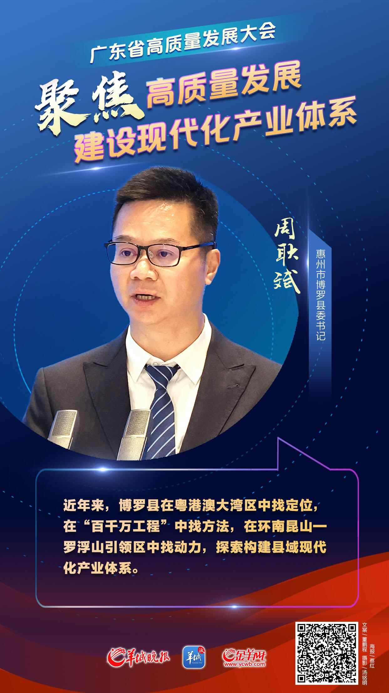 岭南无闲人,万象始更新。2月5日,广东省高质量发展大会在广州召开。“博罗的产业,既有一般县域经济的共性,又因区位优势沉淀独特的基础。”在大会现场的发言中,博罗县委书记周耿斌指出,近年来,惠州市博罗县在粤港澳大湾区中找定位,在“百千万工程”中找方法,在环南昆山—罗浮山引领区中找动力,加快构建县域现代化产业体系。