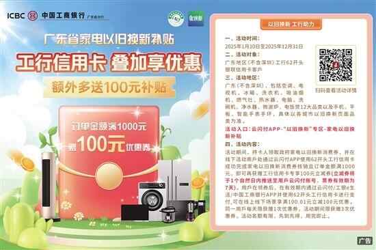 广东省家电以旧换新礼贴 工行信用卡叠加享优惠