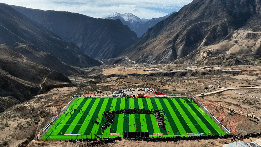 西藏昌都市洛隆县马利镇平均海拔约3700米,高山深谷中,想要找到一片平地实属不易,但地形条件没有阻挡当地人对足球的热爱。