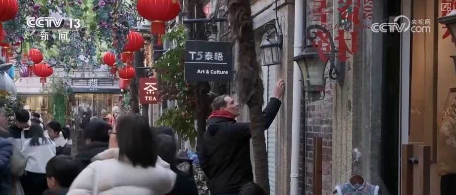 在上海黄浦区田子坊,一家家特色商店和艺术作坊有序排列,外国游客在这里既能感受上海的里弄生活,又能买到特色伴手礼。