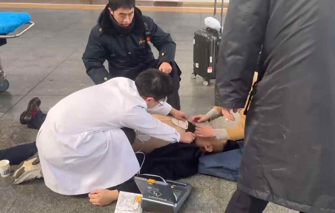 2025年2月4日正值春节假期的最后一天,中午11时30分许,长沙南站16站台发生惊险一幕:一位40岁左右的中年男性旅客在排队登车时突然晕倒在地,失去意识。幸运地是,湖南省第二人民医院春运医疗队执勤医生夏明正在现场执行医疗保障任务,他迅速响应,与车站工作人员一起展开了一场生命救援。