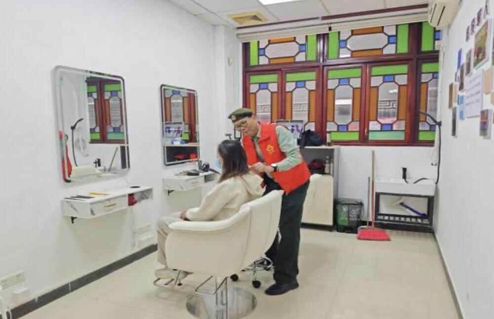 “红棉剪发工作室”由退役军人朱卓坚担任发型总监,“我虽然脱下了军装,但希望还能继续发光发热,做点公益事,为社区贡献一份力量。”每次理发时,朱卓坚都会耐心询问居民的喜好,精心设计发型,用娴熟的技艺和麻利动作为每位居民服务,一推一剪都是对居民的关怀。