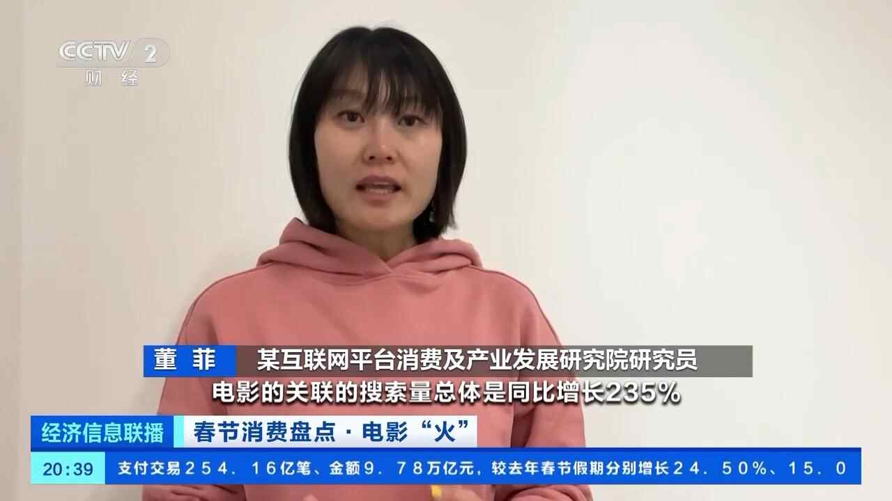 某互联网平台消费及产业发展研究院研究员 董菲:从搜索热度来看,电影关联搜索量总体同比增长235%,关联的产品销量同比增长超5倍,其中哪吒关联产品的销量同比增长超30倍,射雕英雄传相关产品增长超10倍。