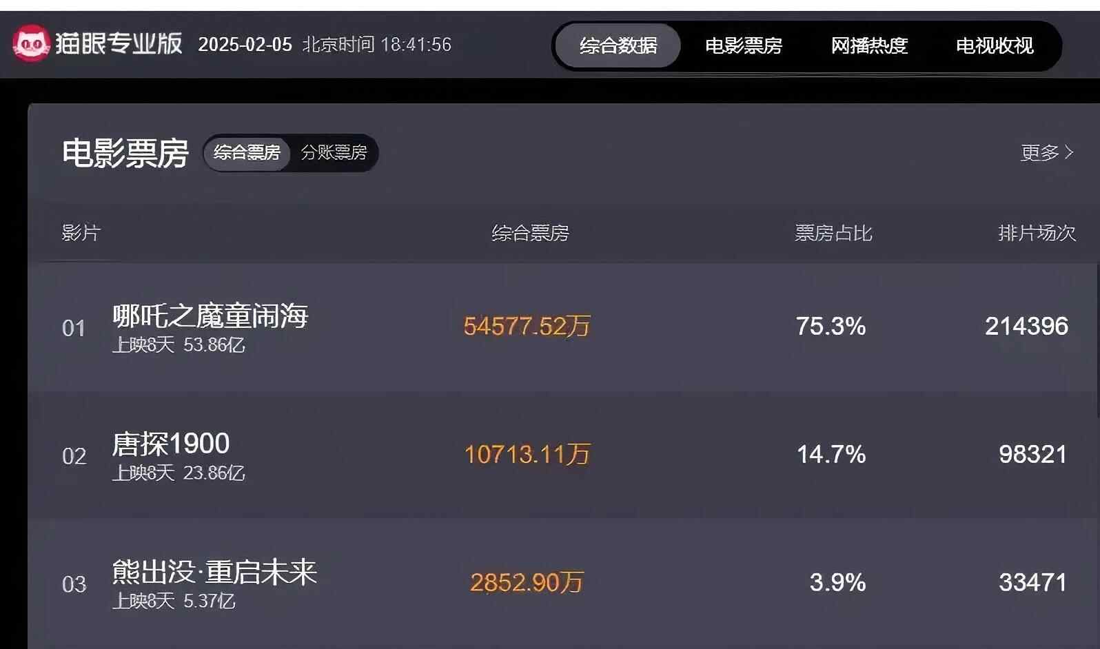 截至2月6日8时30分,《哪吒之魔童闹海》总票房已超过56亿元。