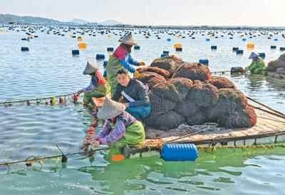 龙须菜的养殖季在每年10月到次年5月,生长周期短,养殖方式简单,经济效益好。在下西坑村185户养殖户中,龙须菜养殖户约占80%。