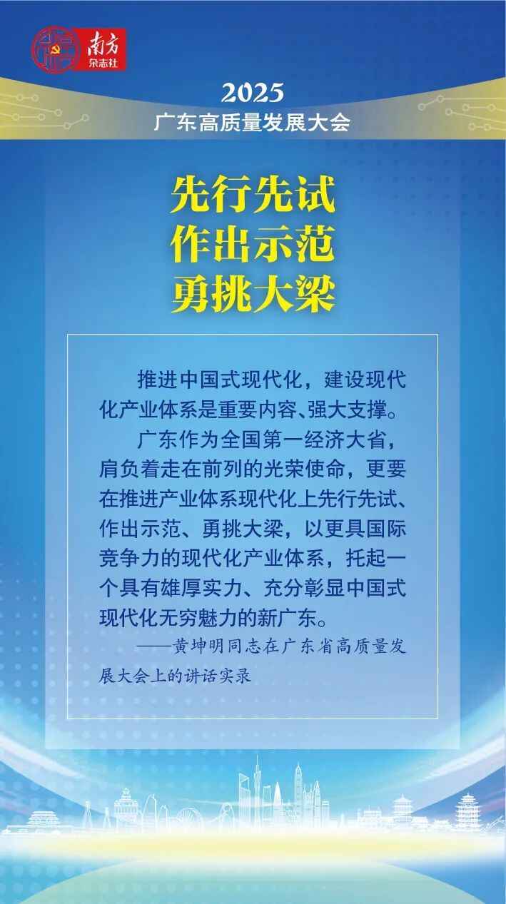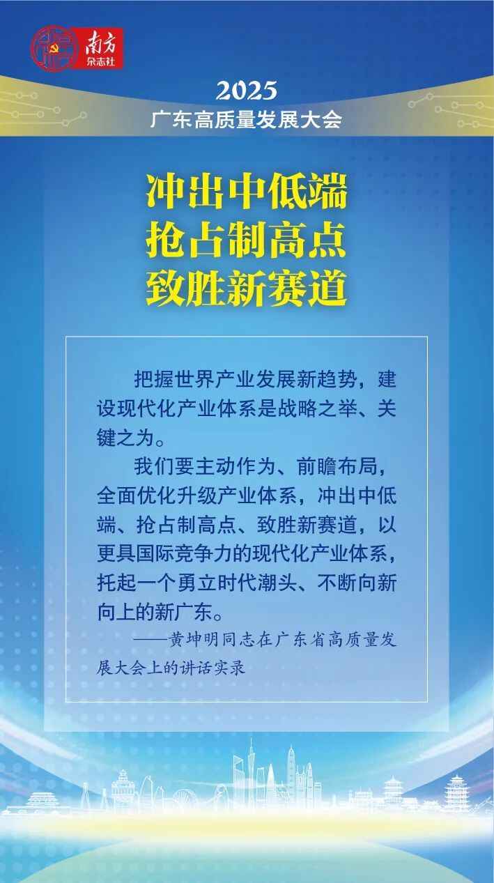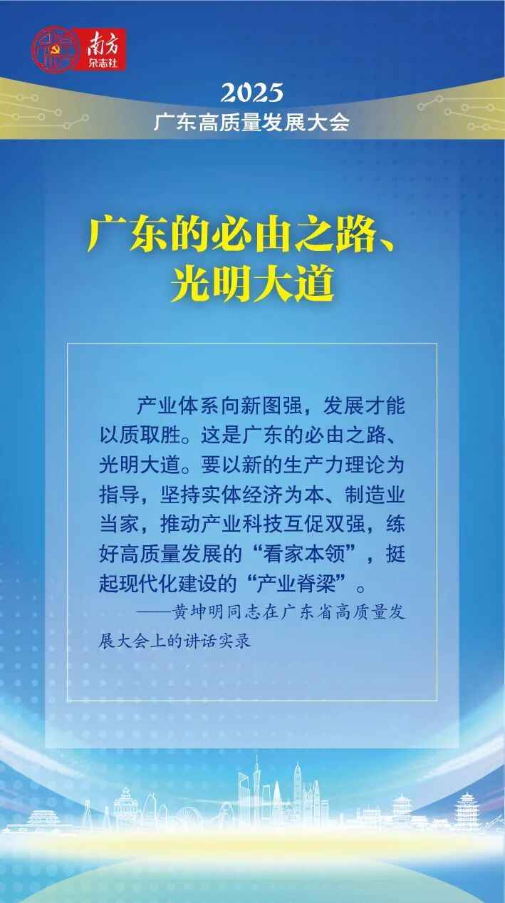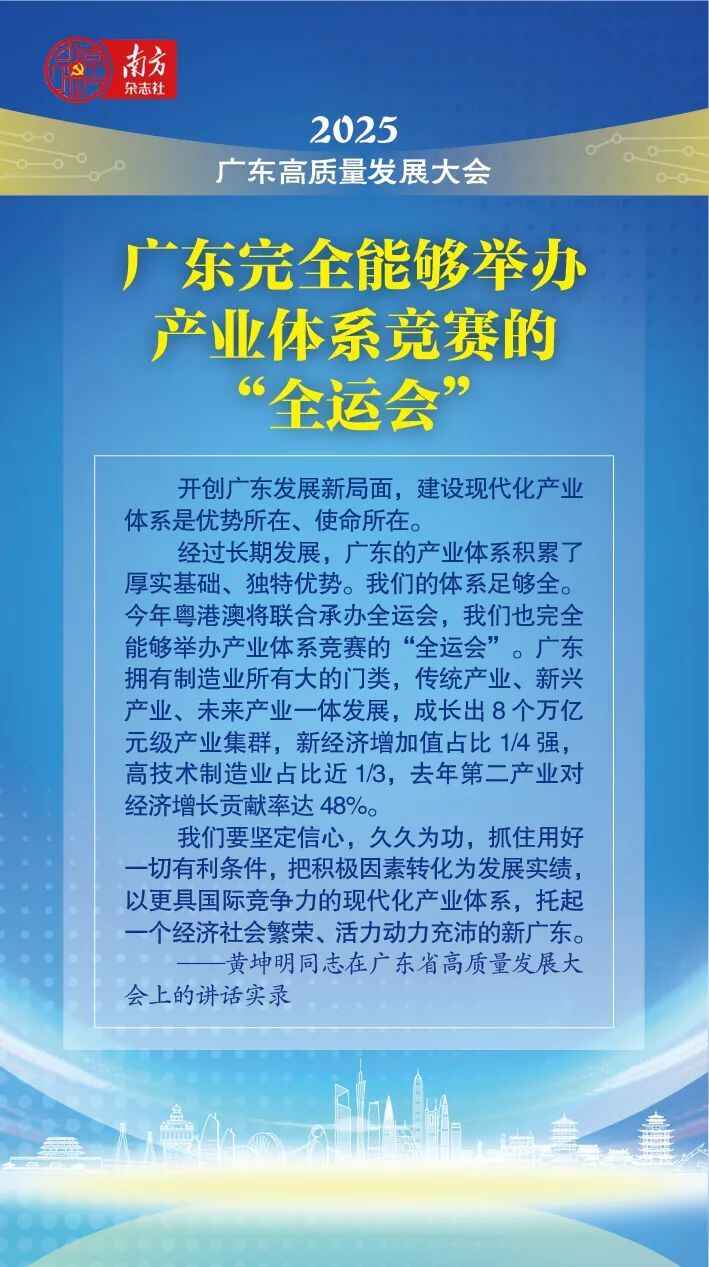 “我们加满油、充足电,锚定目标、整装出发,加快建设现代化产业体系,奋力把广东高质量发展之路走得更有奔头、更有劲头。”广东省委书记黄坤明在全省高质量发展大会上表示,以更具国际竞争力的现代化产业体系,托起一个具有雄厚实力、充分彰显中国式现代化无穷魅力的新广东,托起一个勇立时代潮头、不断向新向上的新广东,托起一个经济社会繁荣、活力动力充沛的新广东。