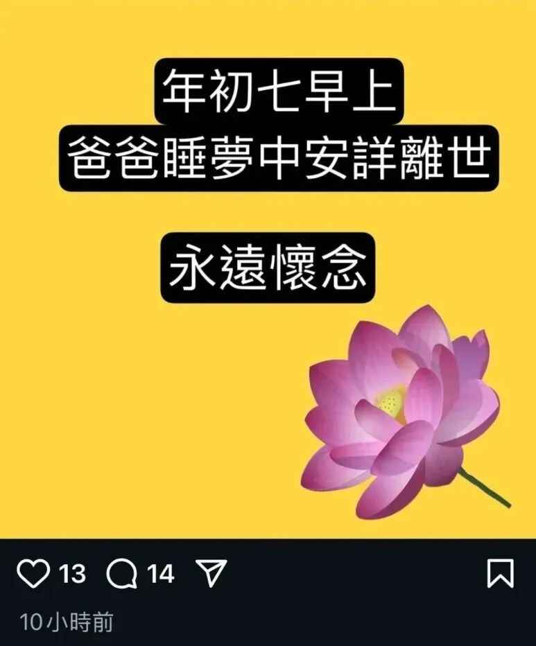 俞明女儿在社交平台公布父亲去世消息(俞明女儿社交平台截图)