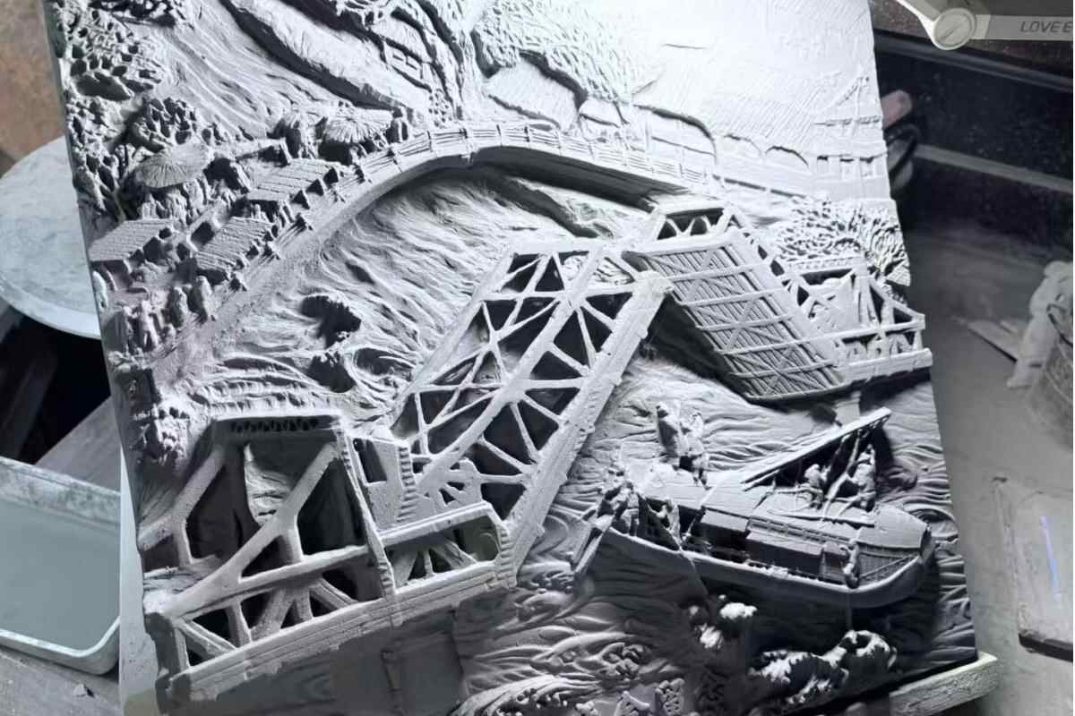 大运河是流动的文化,南北贯通的便利航运带来了众多能工巧匠,也让许多熠熠生辉的非凡技艺在天津诞生,“刻砖刘”就是其中之一。“我们的窑后雕技法就是运河文化的产物,我自己也创作过很多以海河、运河为主题的作品。”刘季赟告诉记者,前不久,她雕刻了一个开桥状态下、全形砖雕镂空的解放桥,虽然挑战重重,但成果令人欣慰,赢得了藏家和观众的高度认可。在她的刻刀之下,海河地标化作砖上艺术,凝固着城市的历史与文化底蕴,成为连接过去与现在的独特纽带。