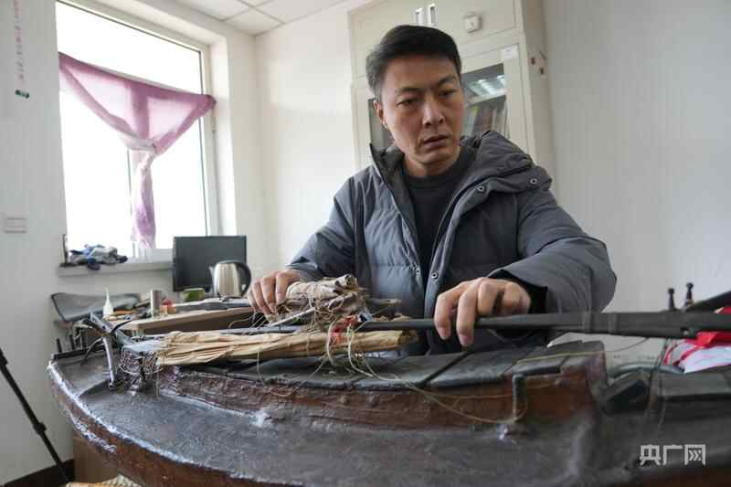 翟俊正在制作船模(央广网记者 周思杨 摄)