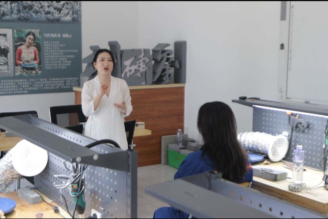 为了培育新一代传承力量,刘季赟积极投身“产教融合”,与高等院校、职业院校携手构建新型教学模式与系统化课程。“我们研发了气电混动工作台、砖雕材料包和多媒体互动课件,应用于高职院校教学。现在的教学情况超出了我的预期,每个班都能涌现出一两位优秀人才,参与到我们工作室的创作中。如今,我们已与多地高校建立合作,受到大家青睐。”谈及未来传承,刘季赟目光坚定,信心十足,“我坚信,在职业教育的有力推动下,砖雕技艺必将代代相传,重焕生机。”