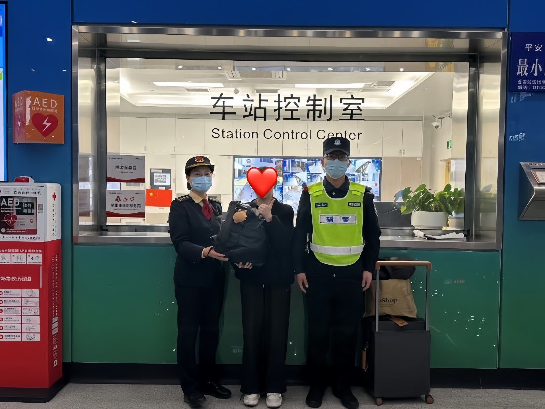 21:40,李女士到深井站认领失物,在与车站工作人员共同清点无误后,她激动地表示,自己因行程匆忙,在发现不慎遗落物品后便向汉溪长隆地铁站辅警求助,本也不抱太大希望能找回,有赖车站工作人员的认真负责让她终能失而复得。
