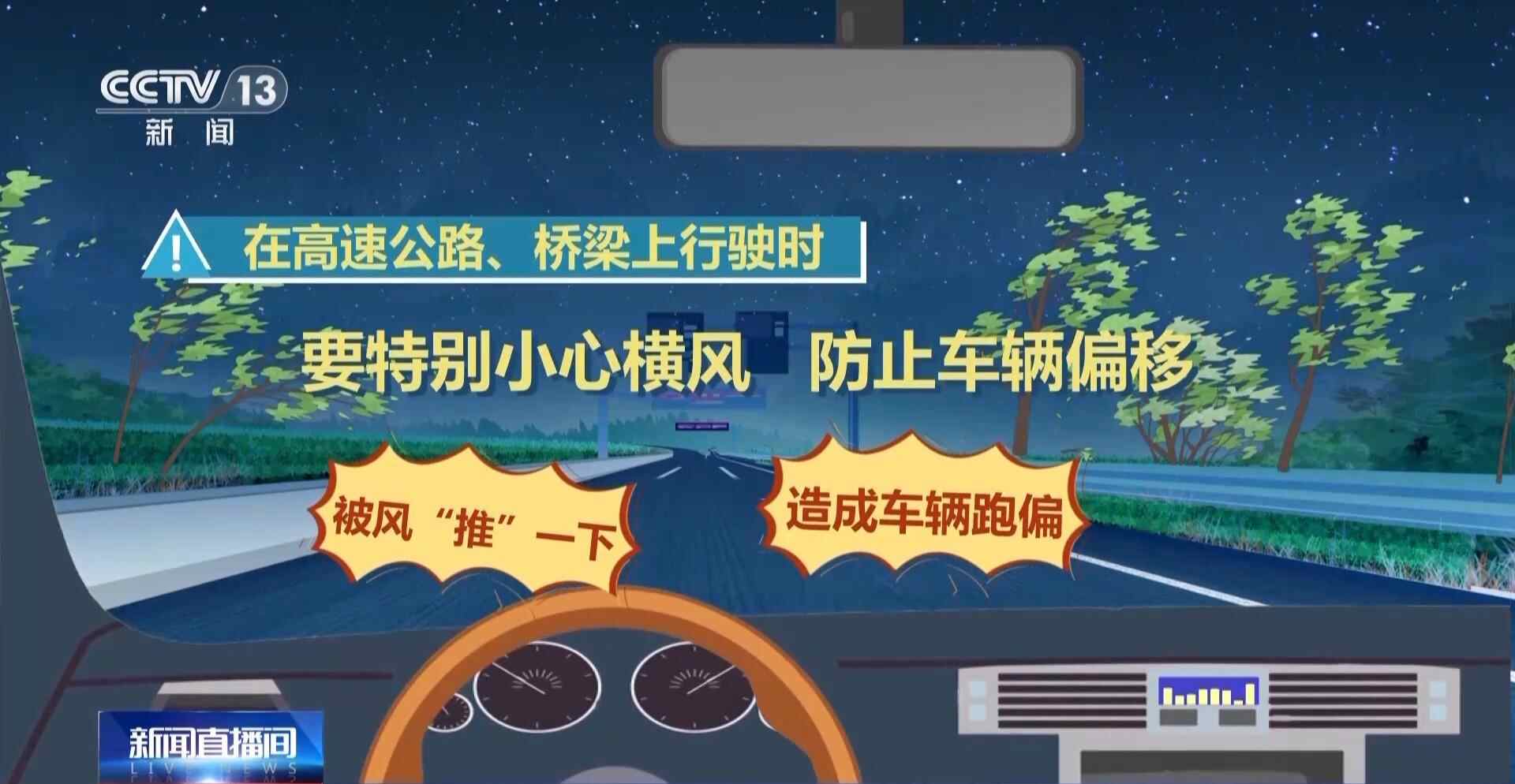 在高速公路、桥梁上行驶时,要特别小心横风,防止车辆偏移。在高速上遇到横风的感觉非常明显,方向盘好像是被一个力量拽着,车身会被风“推”一下,严重的时候会造成车辆跑偏。