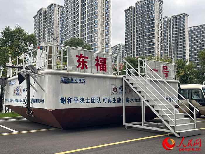 海上制氢平台“东福一号”目前停放在东福研究院展出。人民网 谢星宇摄