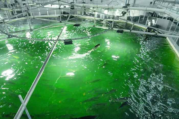 养殖池内,可见大西洋鲑鱼长势良好。受访者供图