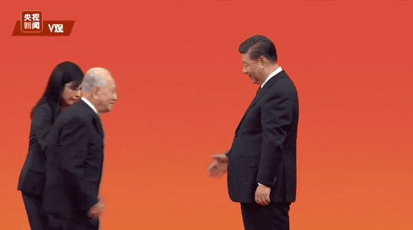第二次握手,发生在2019年9月29日国家勋章和国家荣誉称号颁授仪式上。黄旭华是8位“共和国勋章”获得者之一。