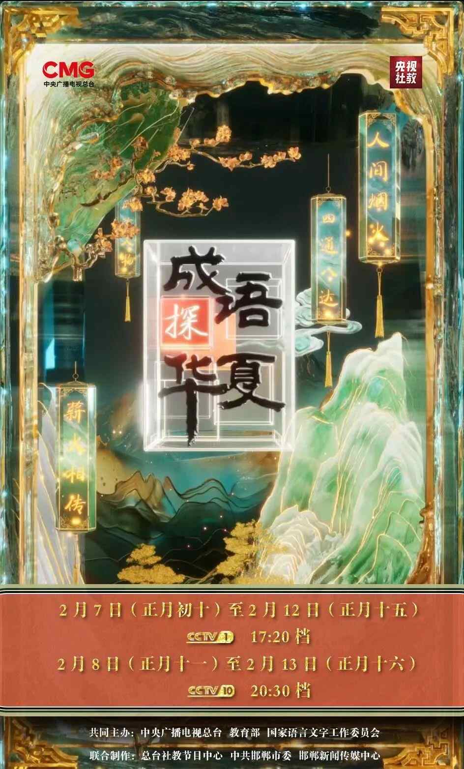 成语探华夏,智慧耀古今。由中央广播电视总台与教育部、国家语言文字工作委员会联合主办的大型文化类季播节目《成语探华夏》于2月7日(正月初十)至2月12日(正月十五)在综合频道17:20档首播,科教频道次日20:30档重播,每天一期。作为中华民族语言艺术的瑰宝,成语故事在赓续文脉、传承历史的过程中扮演着重要的角色。河北省邯郸市,这座有着3100年建城史的城市,以其丰厚的历史文化底蕴,被赋予了“成语典故之都”的美誉。总台社教节目中心携手河北省邯郸市倾力打造的《成语探华夏》节目,将千年古韵与现代传媒相结合,开启一场探索中华成语故事、展现传统文化之美的奇妙旅程。