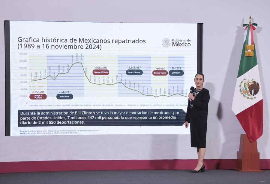 2025年1月21日,墨西哥总统辛鲍姆在首都墨西哥城举行的例行新闻发布会上讲话。新华社发(墨西哥总统府供图)