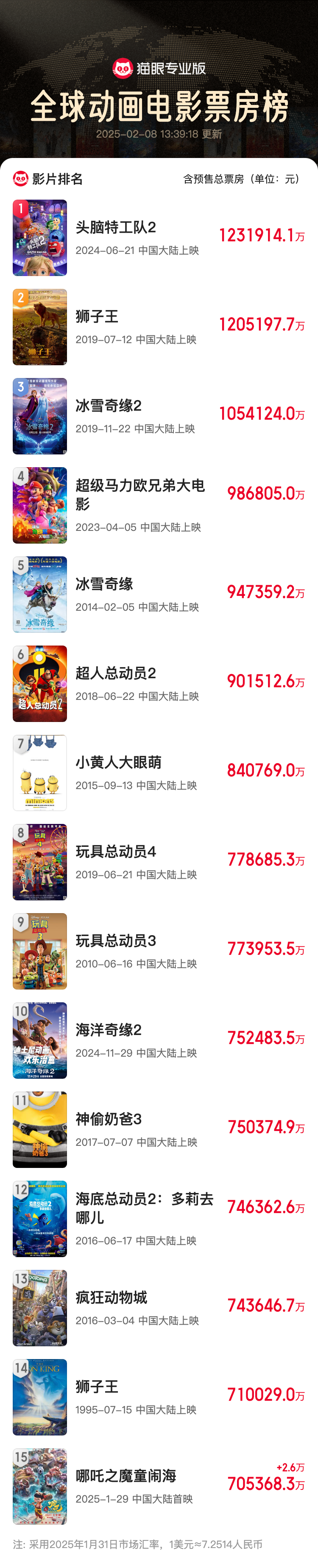 全球TOP15!哪吒“闹”了世界动画电影大海