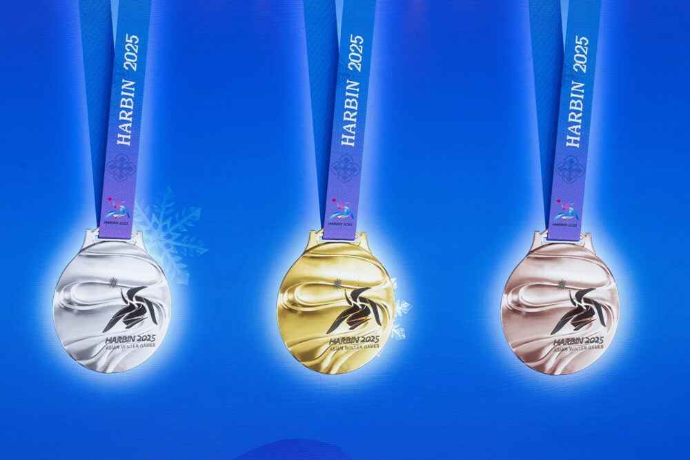这是亚冬会奖牌“竞速精神”的正面(2024年10月30日摄)。