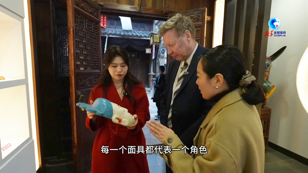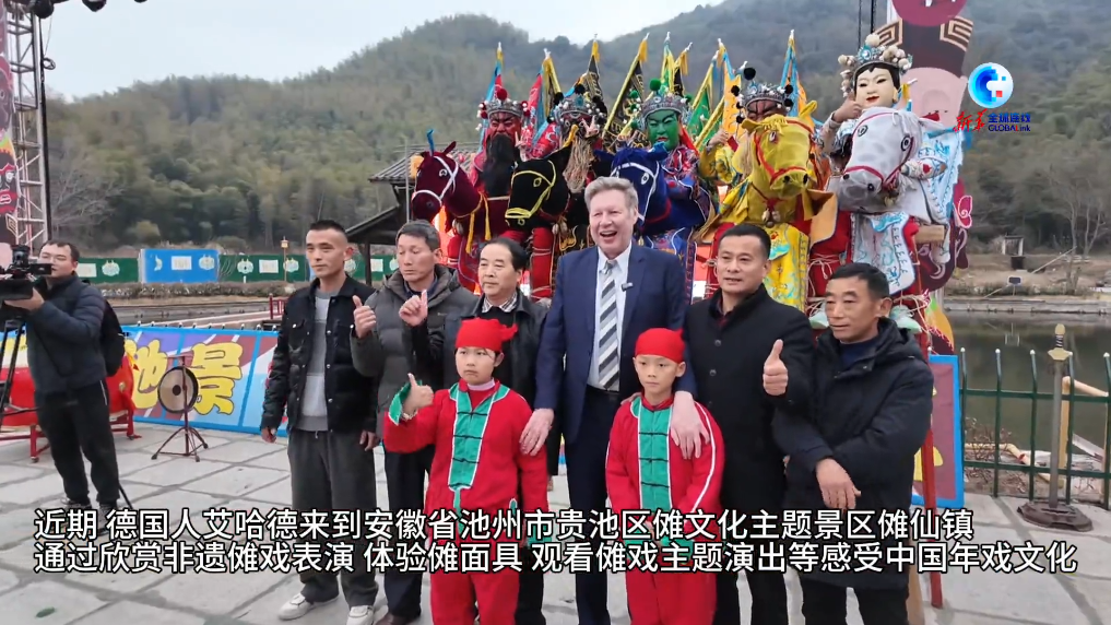 近期,德国人艾哈德来到安徽省池州市贵池区傩文化主题景区傩仙镇,通过欣赏非遗傩戏表演、体验傩面具、观看傩戏主题演出等感受中国年戏文化。作为第一批国家级非物质文化遗产代表性项目的池州傩戏,是安徽省古老稀有的剧种之一,有“戏曲活化石”之称。