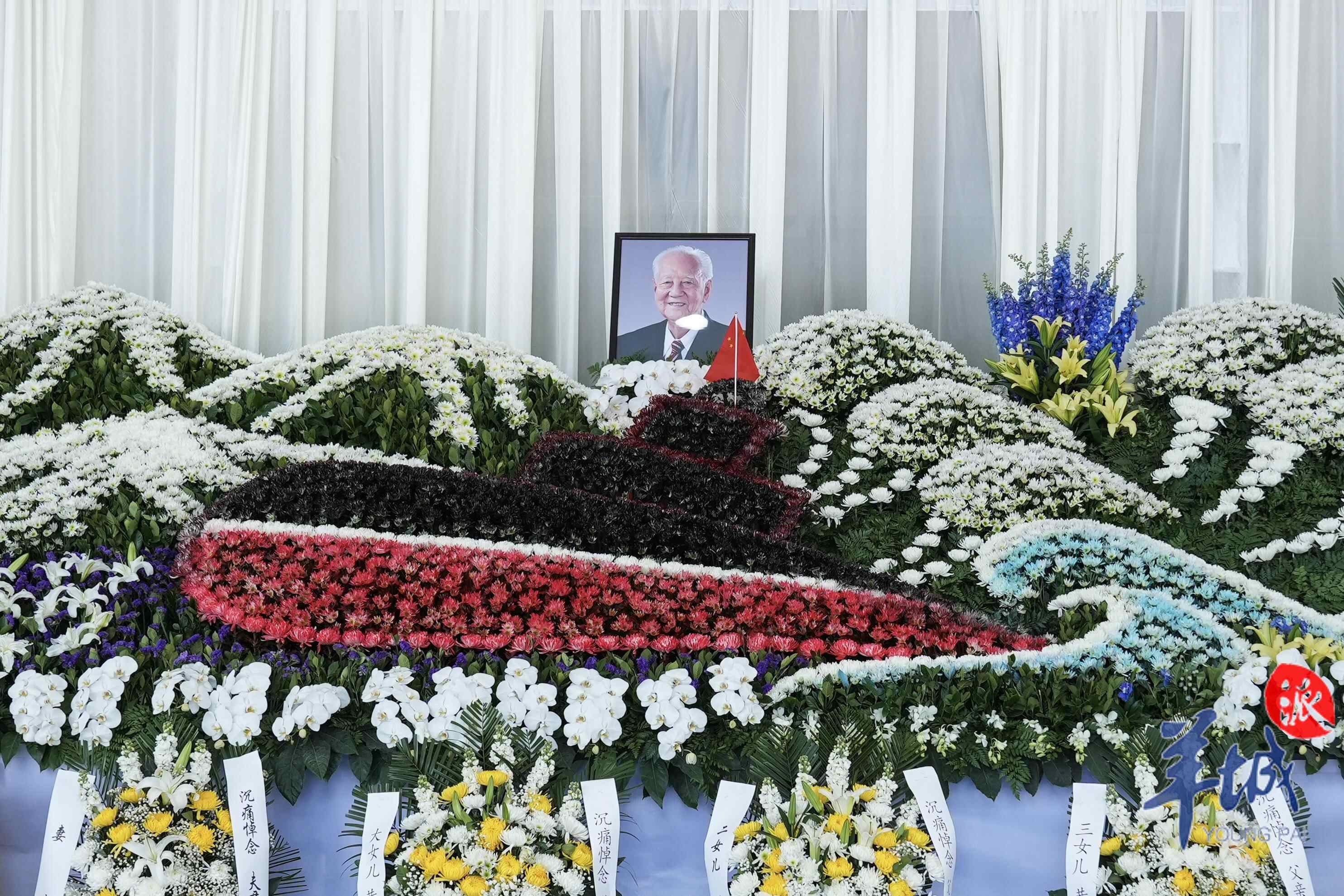 “潜心铸艇解国忧,今朝功成驾鹤去。”2月8日至9日,湖北武汉的吊唁仪式现场,潜艇造型的送别花,静静伫立,群众怀着沉痛心情,自发前来吊唁送别,默默向逝去的英雄致以敬意。8日,与黄旭华相伴69载的夫人,手举一朵白菊,三鞠躬,泪别黄老。9日上午,40多名广东潮汕亲友,来到武汉吊唁仪式现场,送别致敬。