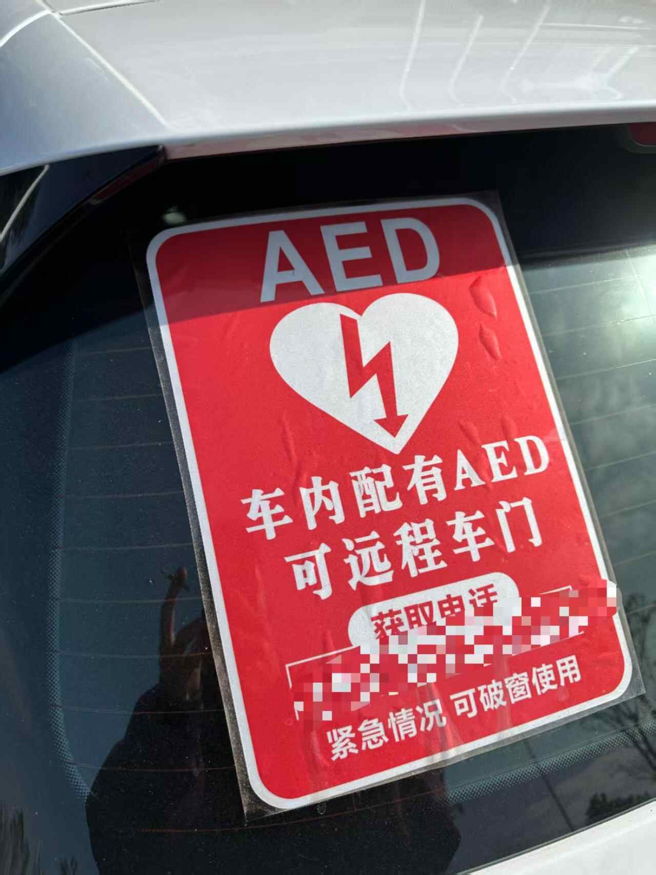 2019年,叶先生的父亲也曾因心脏不适受到了好心人的救助,自那时起他开始意识到急救设备的重要性。2024年6月,叶先生花一万多元采购了一台AED设备,为了帮助更多人,叶先生把AED配备在了车上,并在车窗上贴上标识,“车内配有AED,可远程车门,紧急情况可破窗使用。”