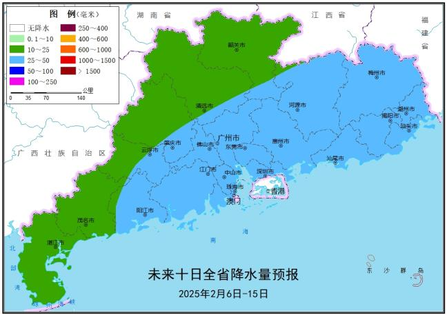 具体而言,天气方面,2月6日—15日,受冷空气影响,前期和后期广东以多云间阴天气为主,局部有小雨;中期则以晴冷干燥天气为主,其中高海拔山区有冰冻或霜冻。