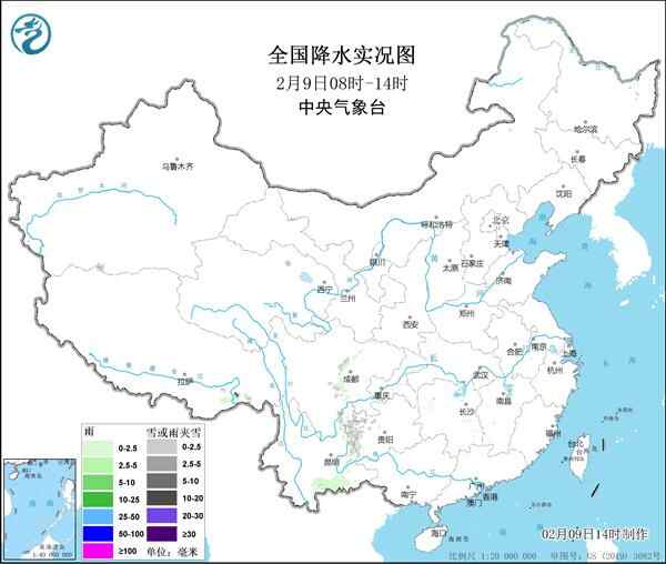 全国降水量图上的绿色(降水)区域少得几乎看不见。
