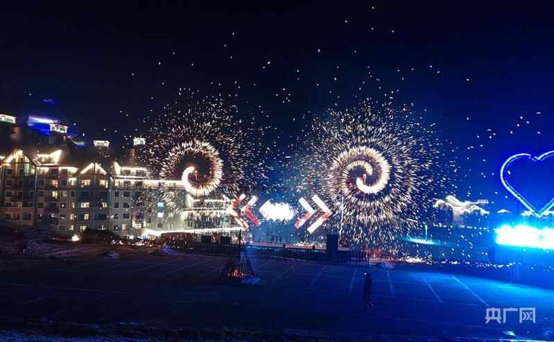 夜幕降临,在太舞滑雪小镇,非遗技艺打铁花、火壶等多场表演呈现出“火树银花”般的奇幻效果。“太震撼了!非遗匠人从高处打铁花,好像无数星斗从天空中坠落而下。”打铁花四散的火花与艺人舞动的身影打造出红红火火过大年的场景,让来自全国各地的游客赞不绝口。