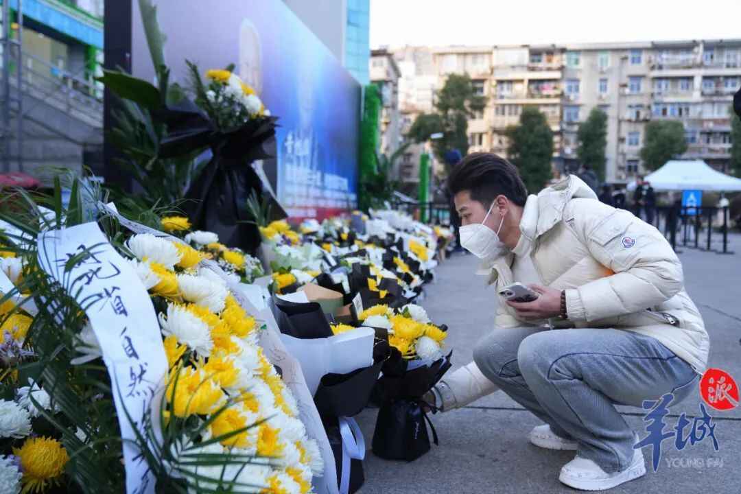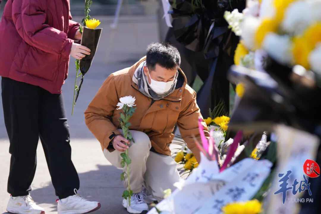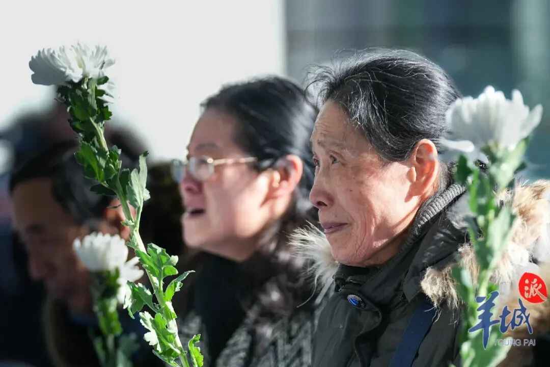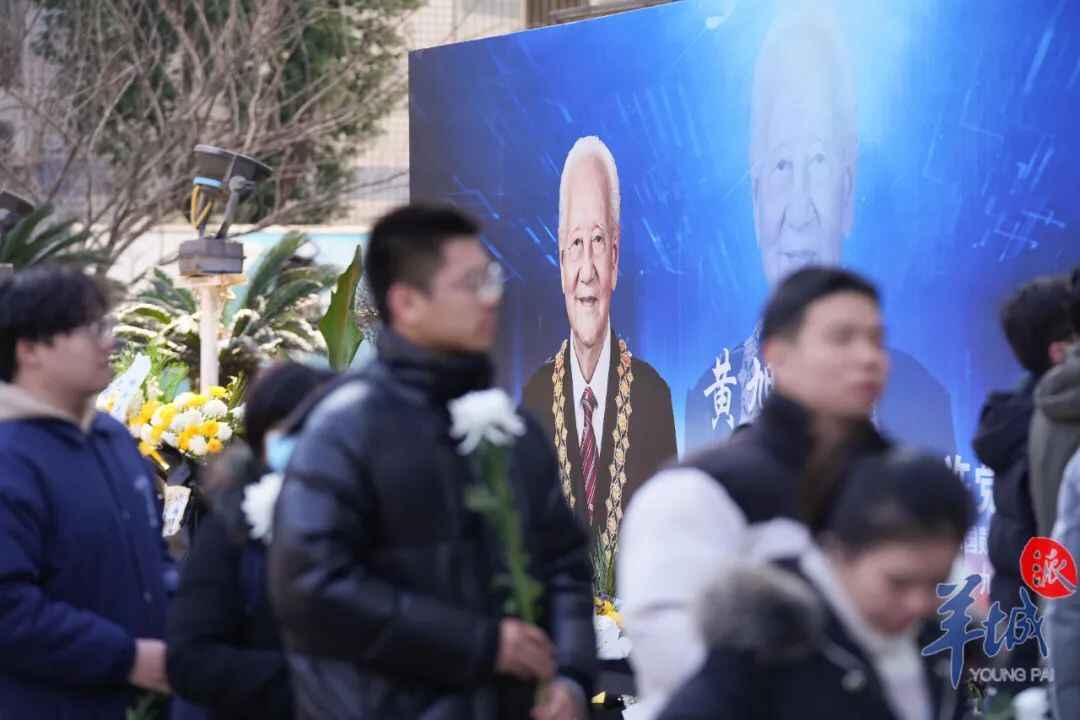 殡仪馆外,刺骨冷风,吹不散人们心中滚烫的敬意,以及如潮的哀思。天刚亮,就已有不少群众手捧鲜花,静静等候,只为送黄旭华院士最后一程。