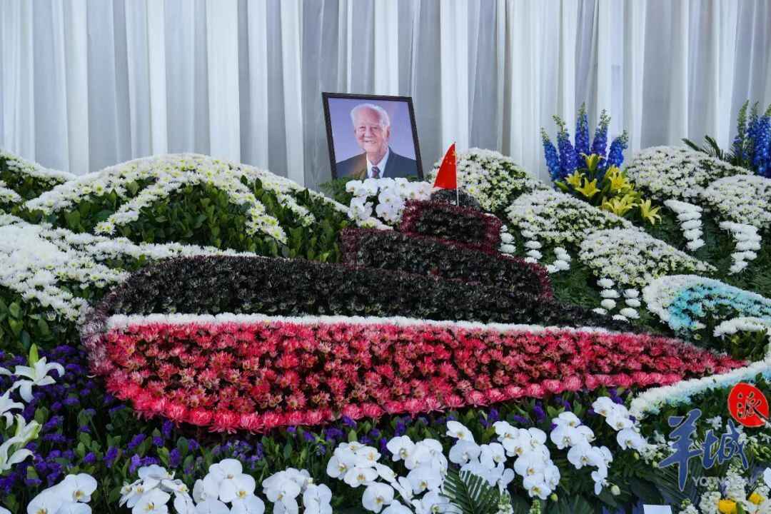 黄旭华院士湖北武汉吊唁仪式现场设计成海洋和核潜艇的花海造型