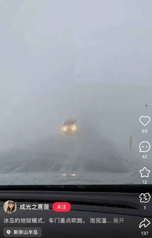 对此,有同一时间在冰岛的网友也表示遭遇到了全境飓风,车门差点被吹跑!