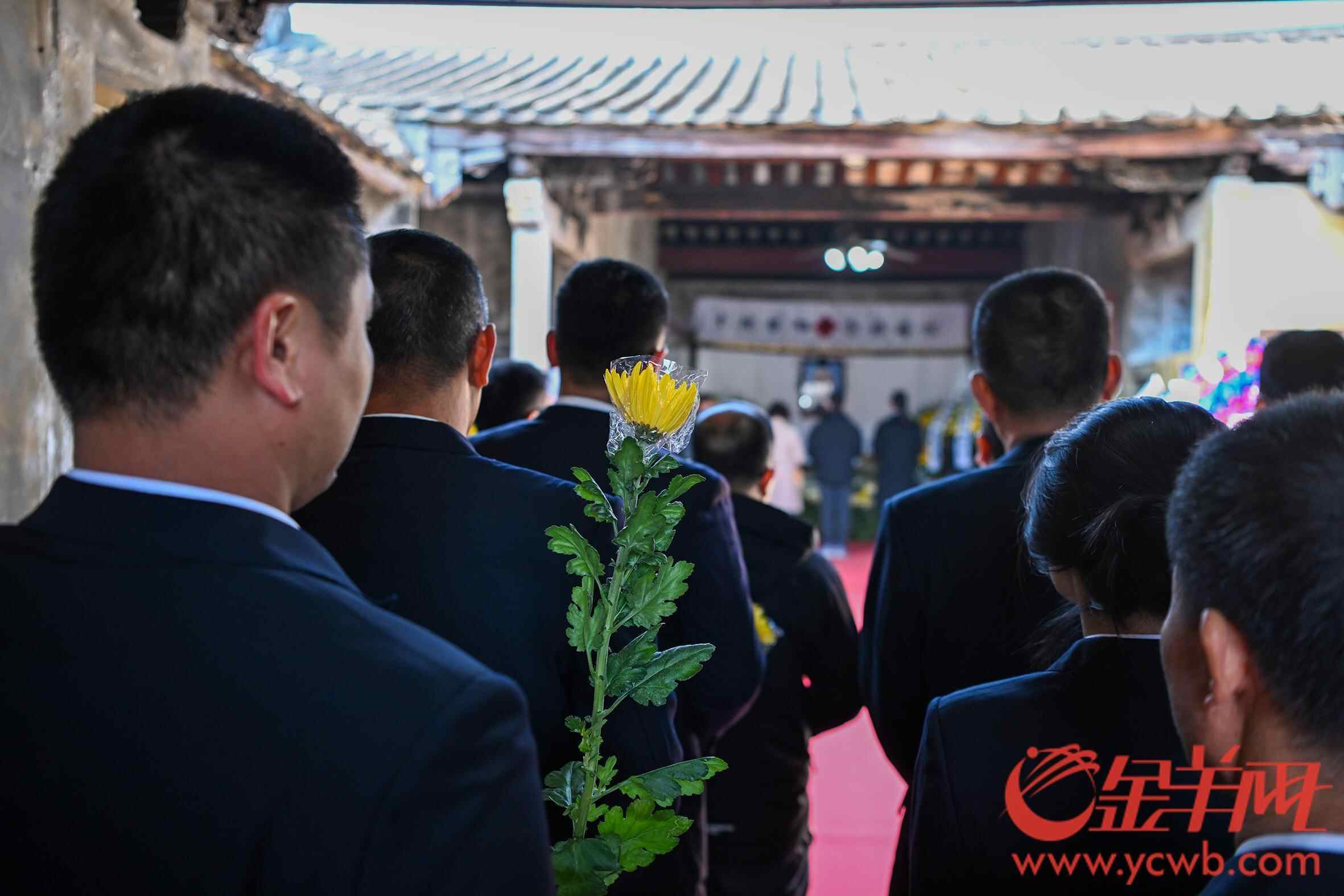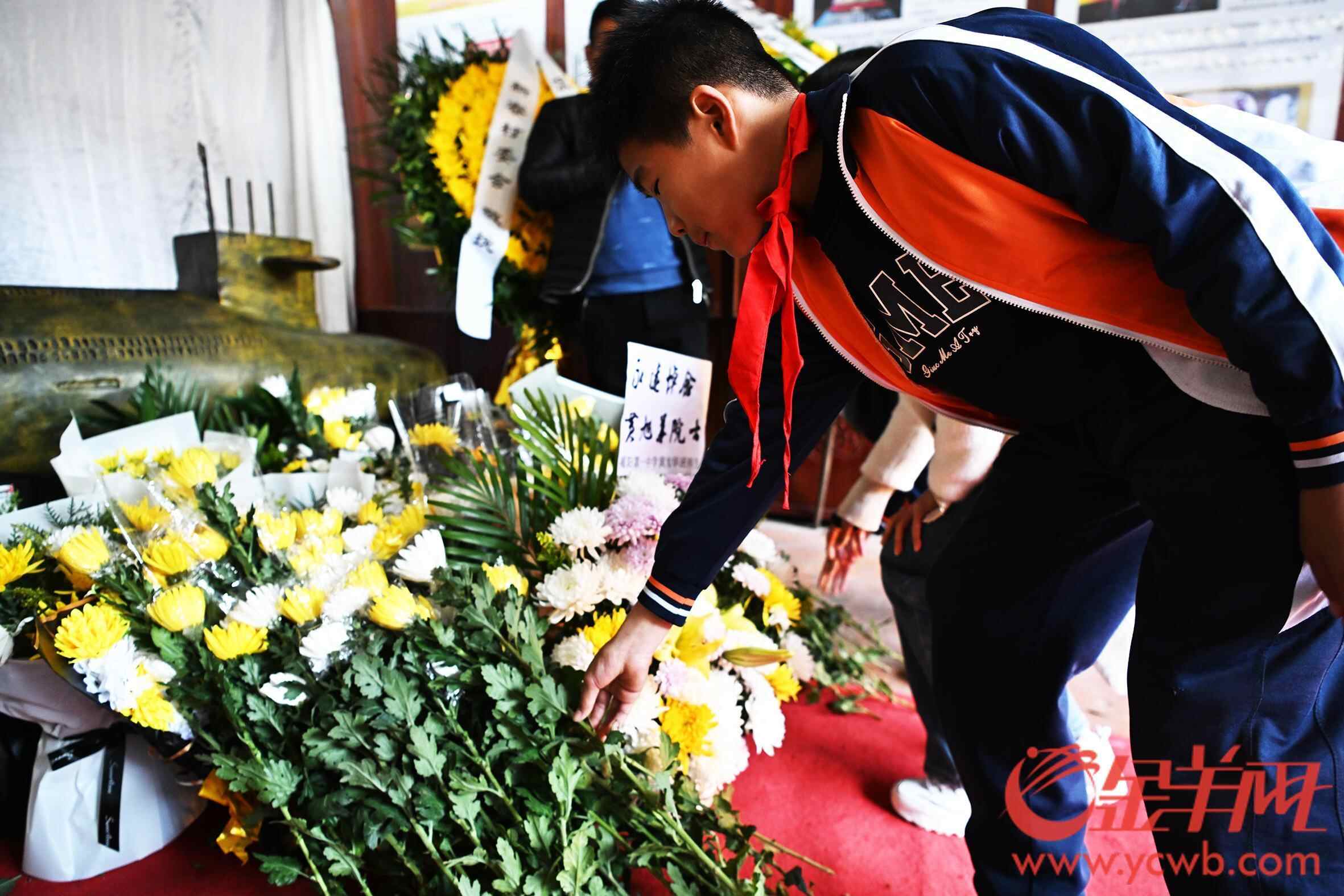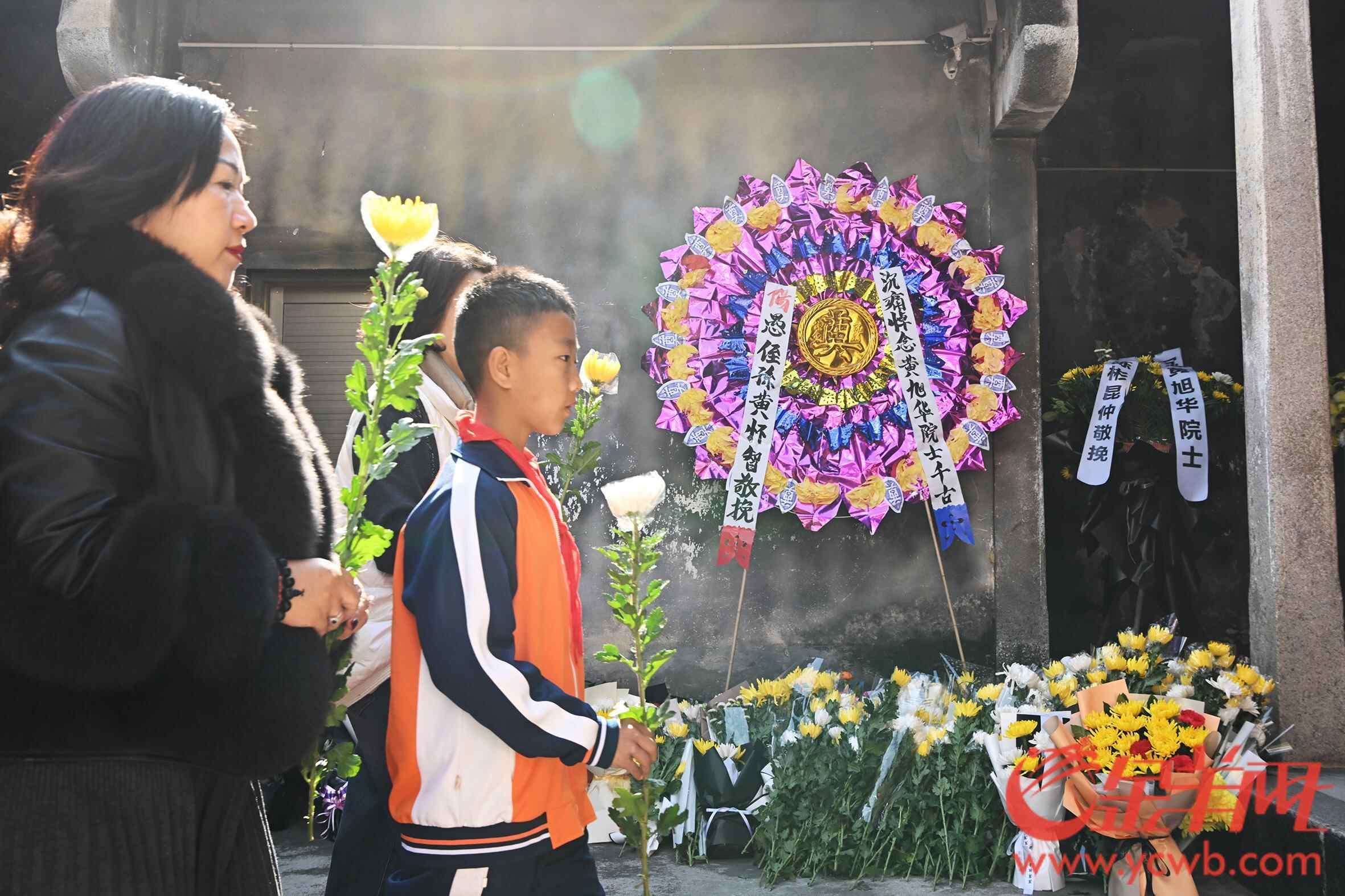 上午九时许,黄旭华故居前就排起了数百米的队伍,来自揭阳一中黄旭华班、玉湖中学以及新寮小学的学生和前来吊唁的市民群众庄严肃穆,怀着悲痛的心情敬献黄白菊花,表达深切缅怀和崇高敬意。
